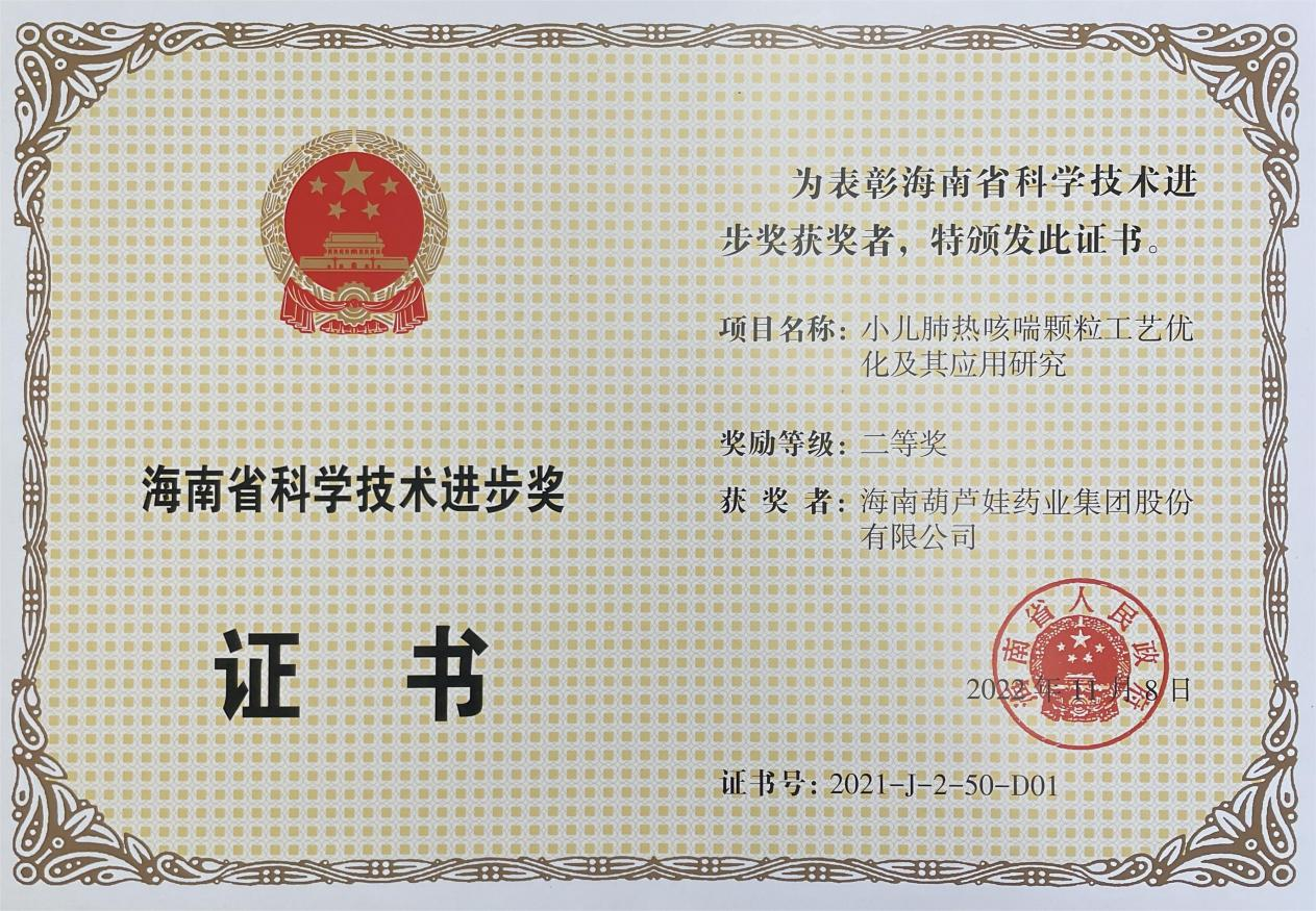 为此,小儿肺热咳喘颗粒的制备方法获得了第二十一届中国专利优秀奖(2019年),专利申请号:ZL201010134951,此次作为专利技术的应用,获得了2021年度海南省科学技术进步奖二等奖。在此之前,k豆钱包牌小儿肺热咳喘颗粒还多次被授予“临床价值中成药品牌”、“中国连锁药店最具合作价值单品”,荣登“中国医药品牌榜”。